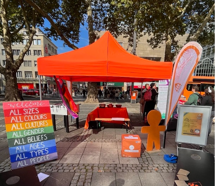 Am 26. September verwandelte sich der Neumarkt in ein großes Outdoor-Jugendzentrum, auf dem zahlreiche Einrichtungen aus Köln ihre Arbeit präsentierten, Mitmachaktionen anboten und die Vielfalt der Offenen Kinder- und Jugendarbeit (OKJA) sichtbar machten. Auch die Offene Tür Quäker war mit einem eigenen Stand vertreten. An dem AGOT-Stand waren wir ebenfalls aktiv: Wir präsentierten Best Practices aus unserer Demokratiearbeit: stellten die U16-Wahl vor und beantworteten Fragen rund um Möglichkeiten der politischen Beteiligung für Kinder und Jugendliche. So konnten Besucher*innen direkt erleben, wie demokratisches Engagement in den Veedeln umgesetzt wird und wie junge Menschen aktiv mitgestalten können.